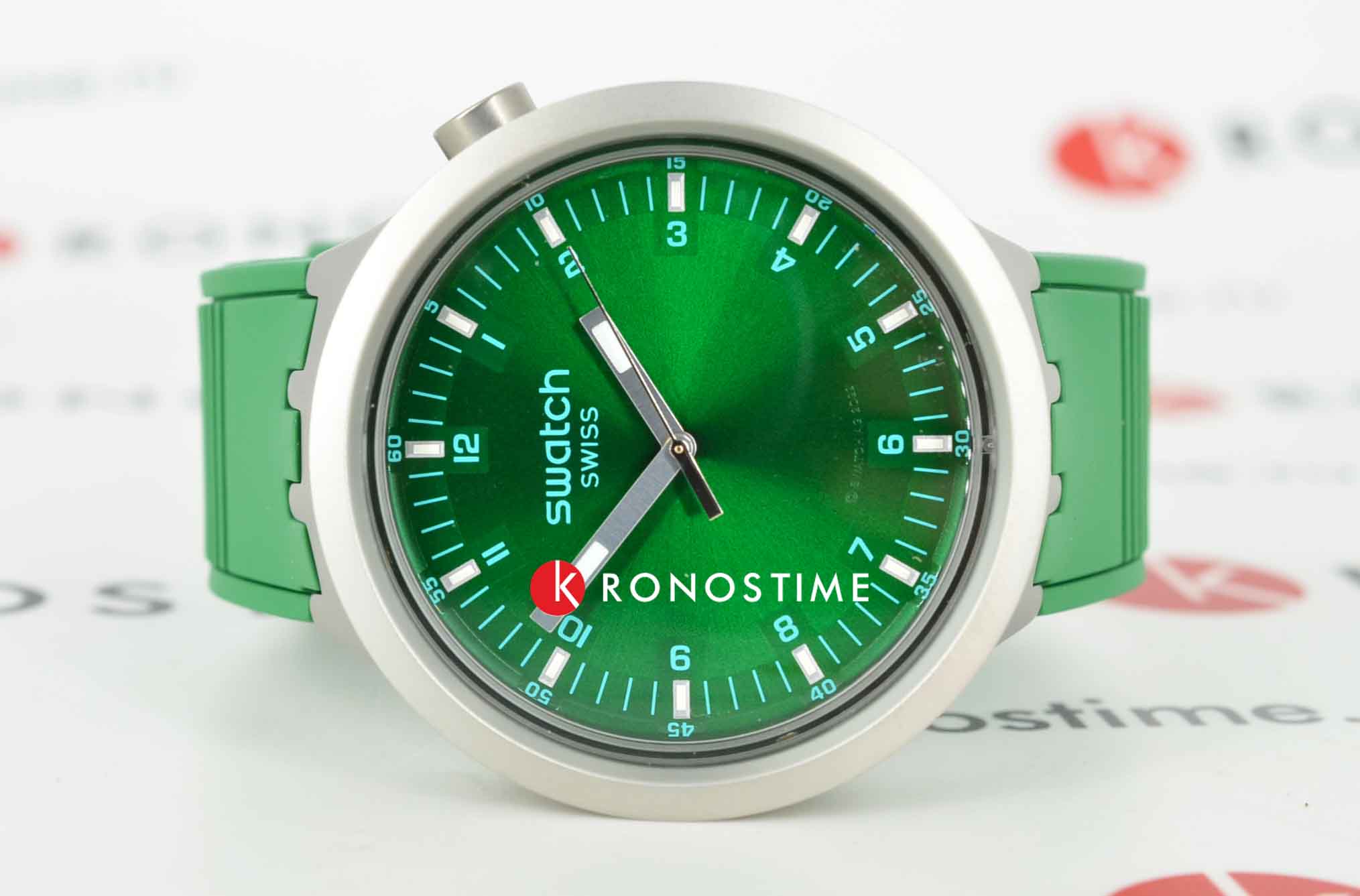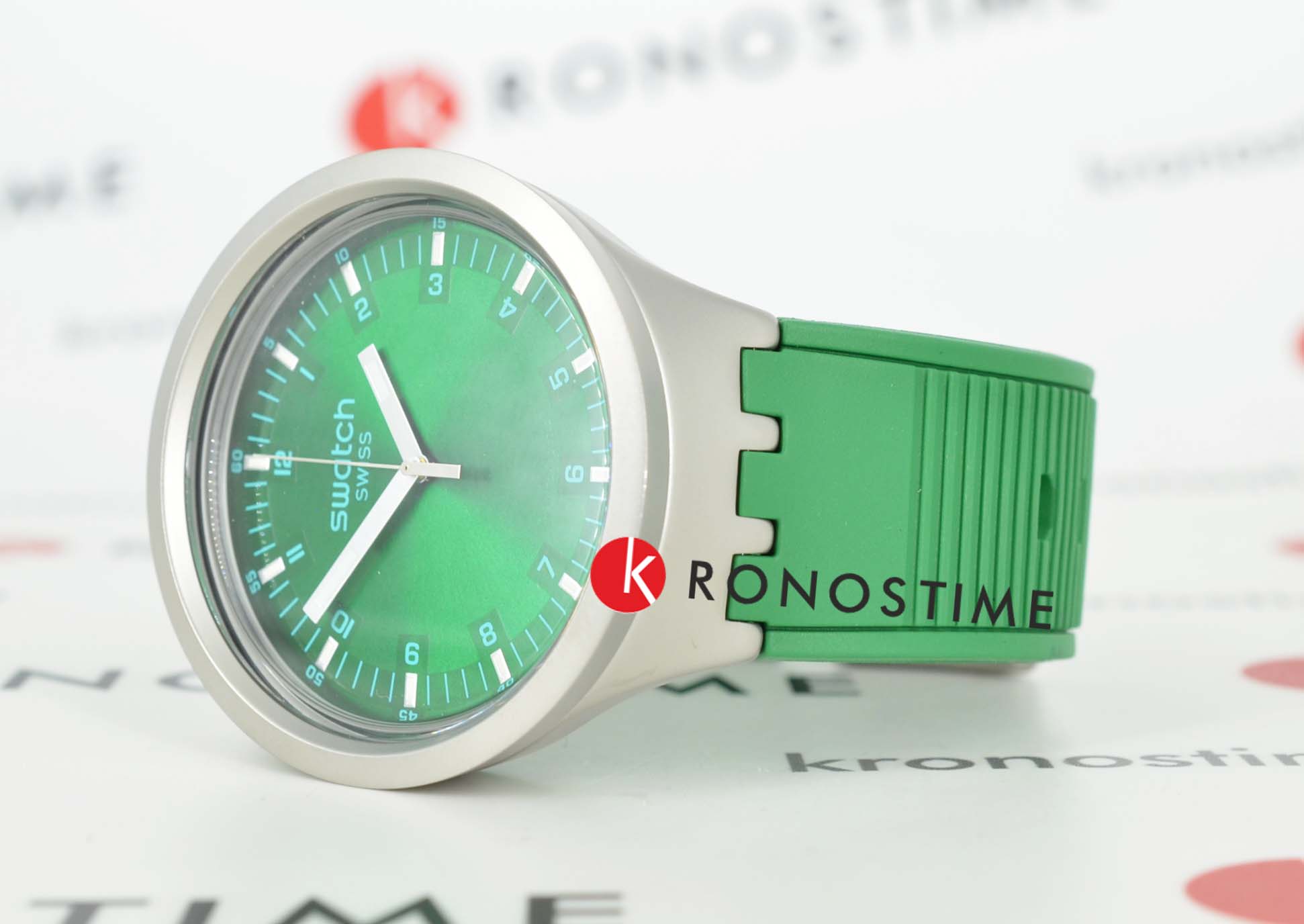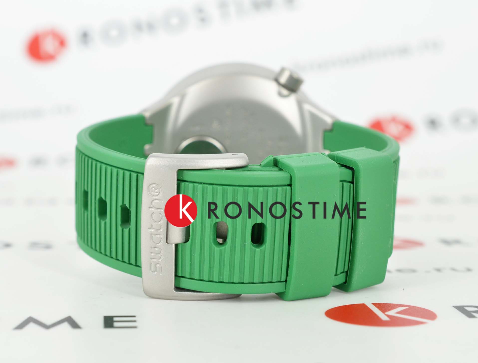 Часы Swatch SB07S101 — это стильный и современный аксессуар для тех, кто ценит лёгкость и комфорт. Часы идеально подойдут как для мужчин, так и для женщин. На зеленом циферблате с радиальной полировкой этих крупных часов размещены светящиеся в темноте индексы, бирюзовые цифры и минутная шкала, серебристые стрелки со светящимися в темноте, благодаря люминесцентному покрытиюЛюминесцентное покрытиеПозволяет считывать показания времени в темноте. Производители наносят на стрелки, часовые индексы, безель или поверхность циферблата светонакопительный состав, дающий холодное свечение., отметками на минутной и часовой. Матированные методом пескоструйной обработки корпус из нержавеющей стали эффектно контрастируют с фактурным зеленым ремешком с тренчиками в тон и стальной полупряжкой. Водозащита 30 метров делает часы практичными для повседневного использования. Эти часы подойдут для повседневного ношения и станут ярким акцентом в вашем наряде.