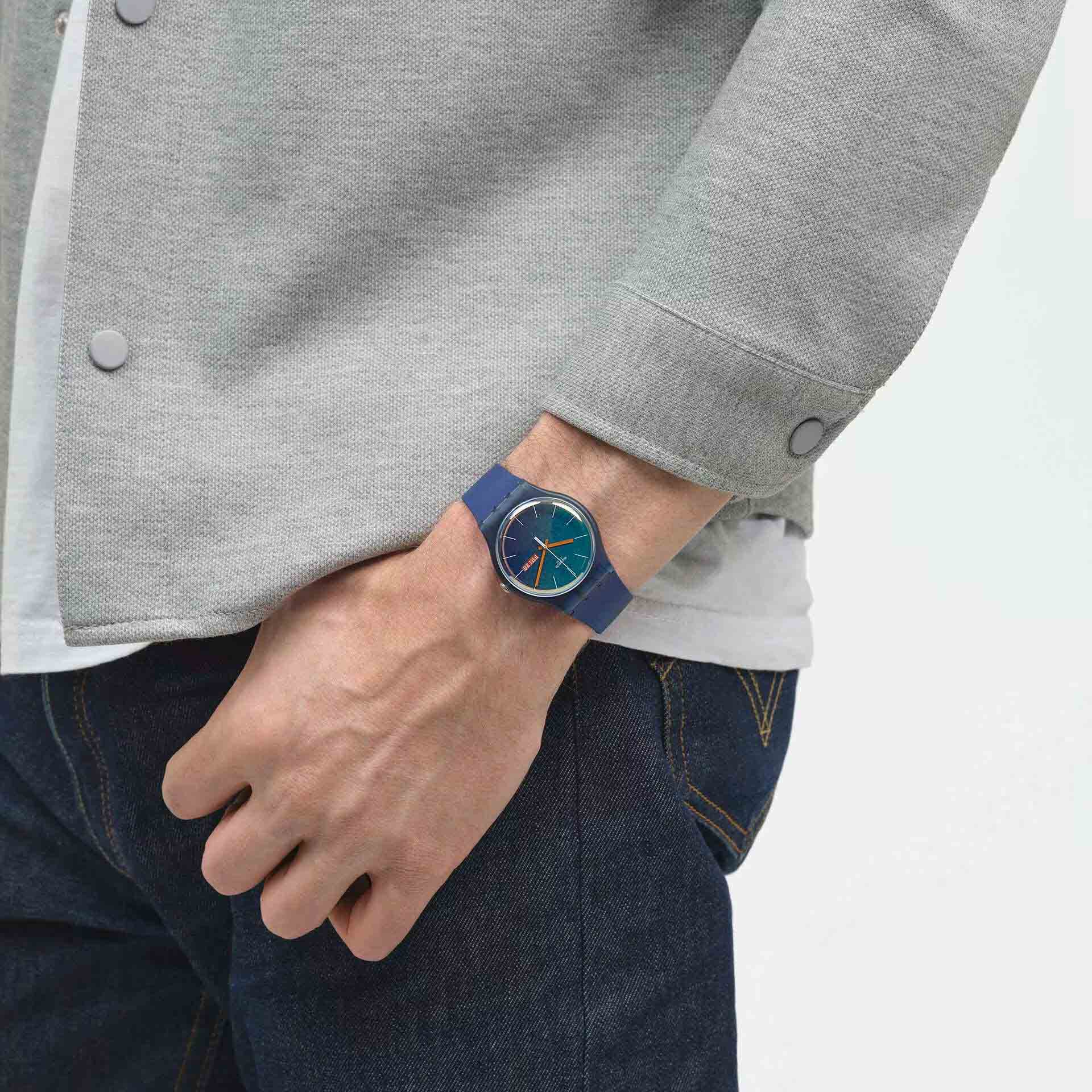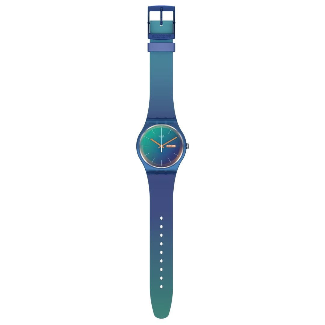 Часы Swatch New Gent Biosourced SO29N708  — это стильный и современный аксессуар, который идеально подходит для повседневного ношения. Эти часы с очаровательным двухцветным дизайном выделяются градиентным принтом в синем и зеленом цветах на ремешке и алюминиевом циферблате. Они имеют корпус и стекло из биоматериала с эффектом Swatch Solar Spectrum, а также окно для даты и дня, расположенное на 3 часах. Внутри часов установлен надежный кварцевый механизм, который обеспечивает точность хода. Эти часы водонепроницаемы до 30 метров, что позволяет не беспокоиться о случайных брызгах или дождевых каплях. Ремешок часов  выполнен из силикона и имеет регулируемую длину, застежка классическая из пластика. Swatch SO29N708  — это идеальный выбор для тех, кто ценит сочетание стиля, комфорта и функциональности в одном аксессуаре.