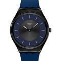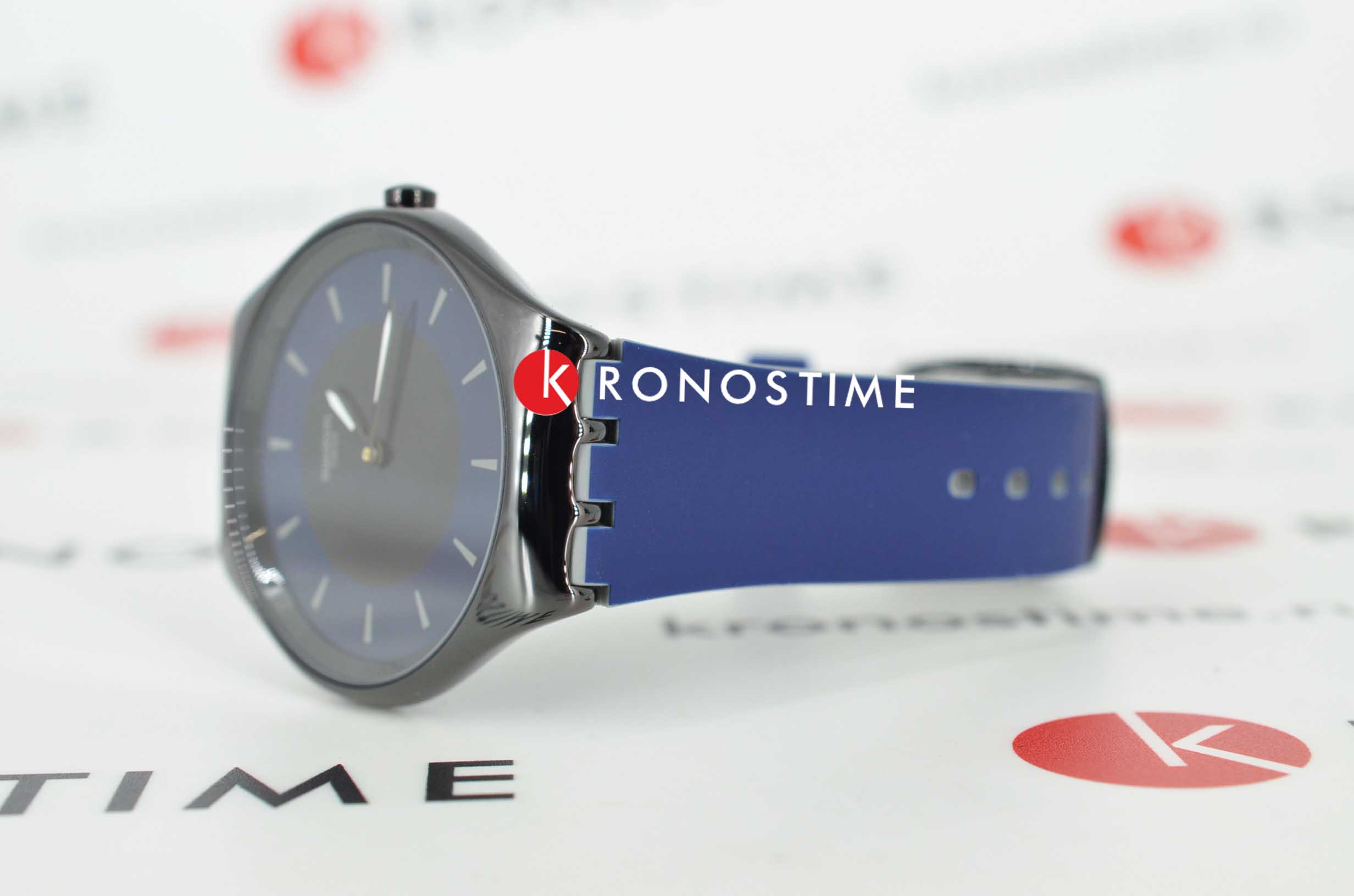 Часы Swatch SYXB108 — это стильный и современный аксессуар для тех, кто ценит лёгкость и комфорт. Часы идеально подойдут как для мужчин, так и для женщин. Эти ультратонкие часы имеют черный циферблат с радиальной полировкой, темно-синим внешним кольцевым принтом и серыми часовыми индексами, а также черные часовую и минутную стрелки с люминесцентным покрытиемЛюминесцентное покрытиеПозволяет считывать показания времени в темноте. Производители наносят на стрелки, часовые индексы, безель или поверхность циферблата светонакопительный состав, дающий холодное свечение.. Блестящий корпус и пряжка из нержавеющей стали с PVDPVDУльтратонкое покрытие наносится в технике вакуумного напыления, сочетает в себе нитрид титана особой прочности со слоем золота или оксида хрома. Несёт в себе декоративную или защитную функцию. покрытием прекрасно сочетаются с матовым темно-синим ремешком с тренчиком в тон и серой изнанкой. Водозащита 30 метров делает часы практичными для повседневного использования. Эти часы подойдут для повседневного ношения и станут ярким акцентом в вашем наряде.