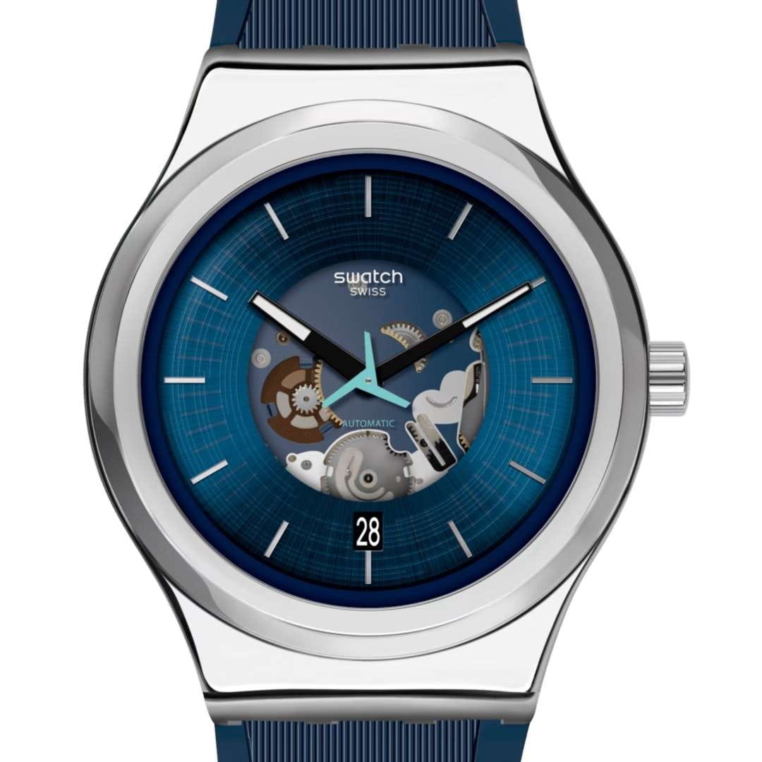 Часы Swatch YIS430 — это стильный и современный аксессуар для тех, кто ценит надежность и комфорт. Эти механические часы имеют синий циферблат радиальной полировкой и прозрачной вставкой. Стрелки с люминесцентным покрытиемЛюминесцентное покрытиеПозволяет считывать показания времени в темноте. Производители наносят на стрелки, часовые индексы, безель или поверхность циферблата светонакопительный состав, дающий холодное свечение.. Секундная стрелка необычной формы и бирюзового цвета. Окошко календаря расположено в положении 3 часов. Блестящий корпус из нержавеющей стали, а через заднюю крышку с цифровым принтом просматривается механизм SISTEM51. Модель оснащена автоматическим механизмом Sistem51, который состоит всего из 51 детали и имеет запас хода 90 часов.  Дополняет модель матовый синий ремешок из резины с классической застежкой. Водозащита 30 метров позволяет защитить корпус от случайных брызг или капель дождя, что делает часы практичными для повседневного использования. Эти часы станут ярким акцентом в вашем образе.