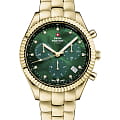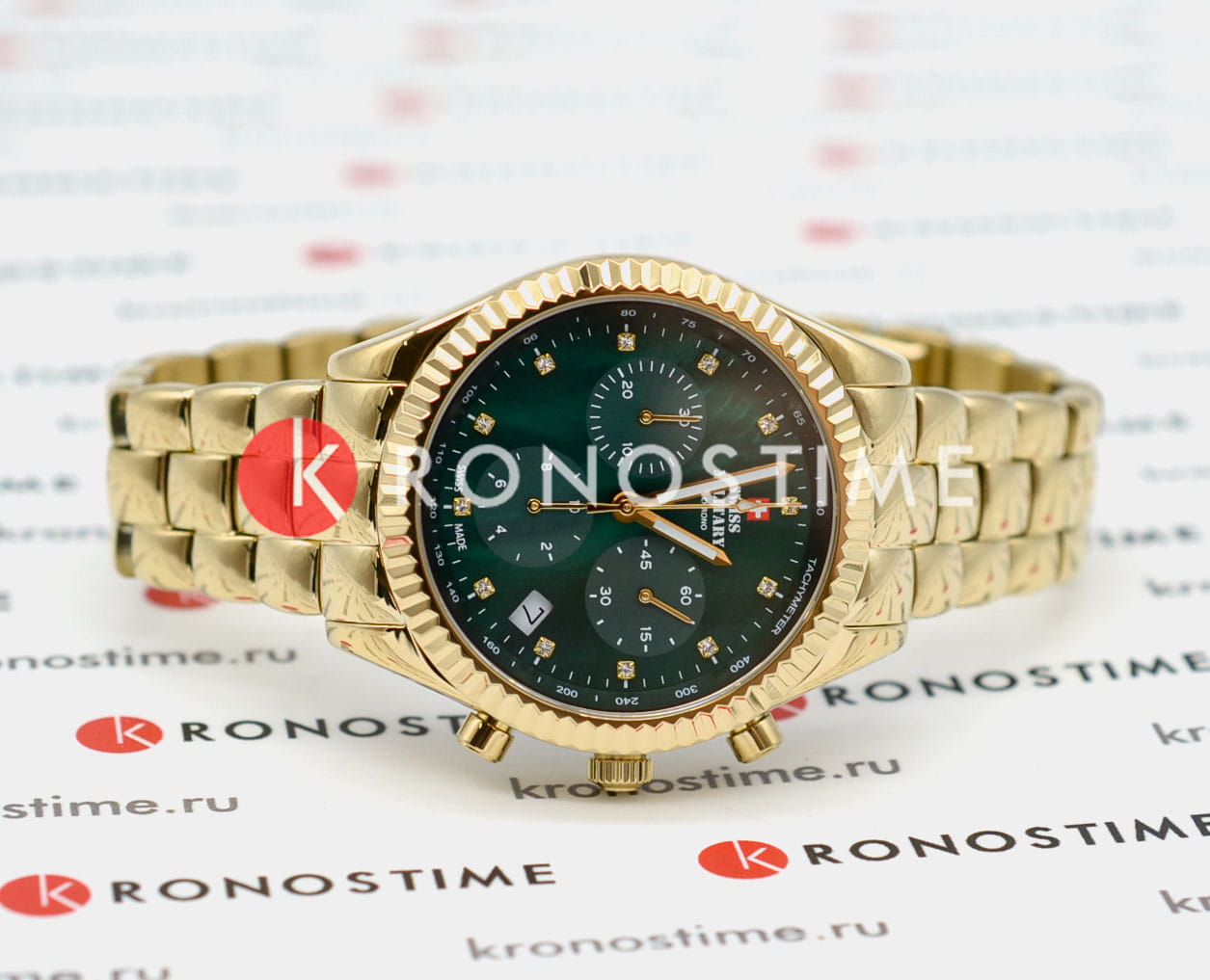 Женские швейцарские часы хронографХронографФункция позволяет измерять отрезки времени с особой точностью: часы, минуты, секунды. Верным признаком хронографа является наличие на циферблате 3 дополнительных окошек-счётчиков. с секундомеромСекундомерСекундоме́р — прибор, способный измерять интервалы времени с точностью до долей секунды. Swiss Military by Chrono Elegant Sports SM30207.04 , кварцевый механизм с высокой точностью. Cапфировое стеклоСапфировое стеклоПрочный и надёжный материал из кристалла сапфира синтетического происхождения, характеризующийся особой твёрдостью и устойчивостью к царапинам и повреждениям. устойчивое к появлению царапин и обладающее высокой прозрачностью. На циферблате расположены три дополнительных индикатора и окошко даты. Метки на циферблате украшены кристаллами. Неподвижный безельБезельВнешний ободок, закрепляющий стекло. В спортивных часах так называется поворотное кольцо с делениями на циферблате, выполняет роль таймера – замеряет отрезки времени на шкале. Неподвижный безель – элемент декора. Однонаправленно вращающийся безель на дайверских часах позволяет фиксировать моменты погружения и выныривания на поверхность. из нержавеющей стали с PVDPVDУльтратонкое покрытие наносится в технике вакуумного напыления, сочетает в себе нитрид титана особой прочности со слоем золота или оксида хрома. Несёт в себе декоративную или защитную функцию. покрытием и со шкалой тахиметрТахиметрРазмеченная шкала, располагается на ободке или безеле часов. Тахиметр позволяет рассчитать скорость на определённом участке пути, расстояние измеряется в километрах или милях.. Стрелки с люминесцентным покрытиемЛюминесцентное покрытиеПозволяет считывать показания времени в темноте. Производители наносят на стрелки, часовые индексы, безель или поверхность циферблата светонакопительный состав, дающий холодное свечение.. Класс водозащиты: 50 метров, позволит защитить корпус от случайных брызг или капель дождя. Корпус и браслет часов изготовлен из нержавеющей стали с PVDPVDУльтратонкое покрытие наносится в технике вакуумного напыления, сочетает в себе нитрид титана особой прочности со слоем золота или оксида хрома. Несёт в себе декоративную или защитную функцию. покрытием. Стальной браслет на раскладной застёжкеРаскладная застёжкаТакой тип застёжки используется только на браслетах из металла. Она никогда не раскрывается полностью, происходит разделение на 2 и более частей. Раскладывающая застёжка снизит вероятность потери часов к минимуму..