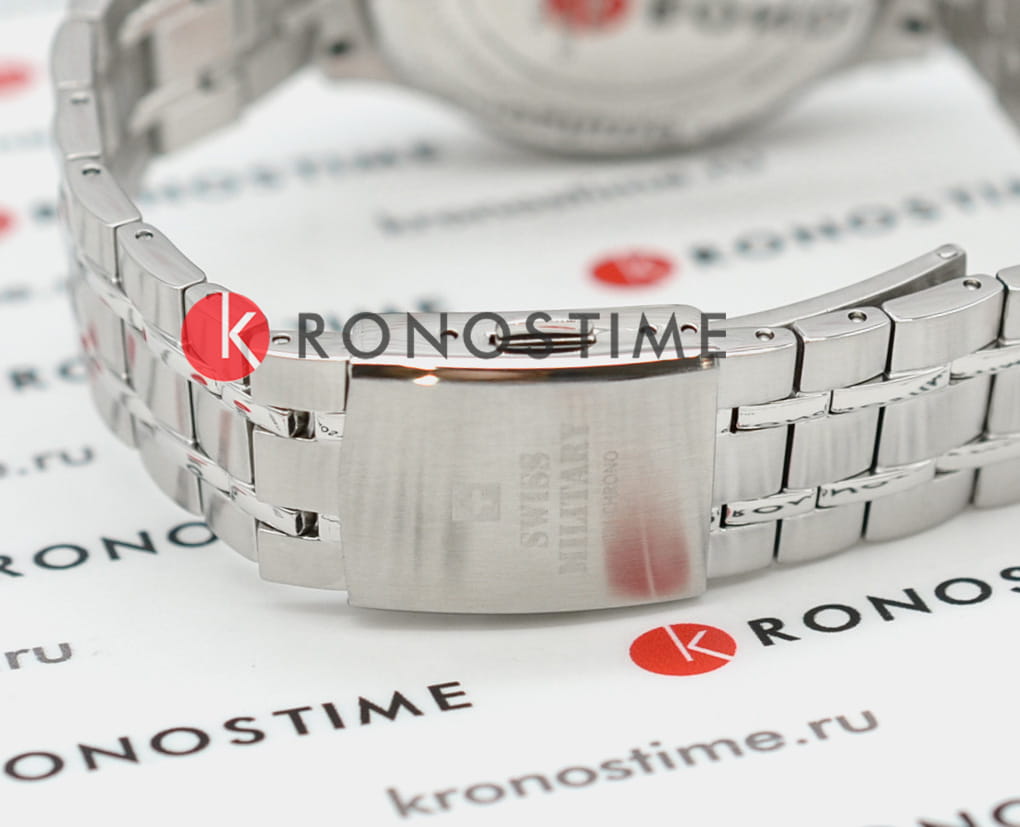 Мужские швейцарские часы хронографХронографФункция позволяет измерять отрезки времени с особой точностью: часы, минуты, секунды. Верным признаком хронографа является наличие на циферблате 3 дополнительных окошек-счётчиков. с секундомеромСекундомерСекундоме́р — прибор, способный измерять интервалы времени с точностью до долей секунды. Swiss Military by Chrono Vintage Chronograph SM34098.03, кварцевый механизм с высокой точностью. Cапфировое стеклоСапфировое стеклоПрочный и надёжный материал из кристалла сапфира синтетического происхождения, характеризующийся особой твёрдостью и устойчивостью к царапинам и повреждениям. устойчивое к появлению царапин и обладающее высокой прозрачностью. Корпус часов изготовлен из нержавеющей стали. На циферблате расположены два дополнительных индикатора и окошко даты. Окошко даты находится в положении 6 часов. Стрелки с люминесцентным покрытиемЛюминесцентное покрытиеПозволяет считывать показания времени в темноте. Производители наносят на стрелки, часовые индексы, безель или поверхность циферблата светонакопительный состав, дающий холодное свечение.. Класс водозащиты: 100 метров, позволит плавать, нырять и заниматься другими водными видами спорта. Стальной браслет на раскладной застёжкеРаскладная застёжкаТакой тип застёжки используется только на браслетах из металла. Она никогда не раскрывается полностью, происходит разделение на 2 и более частей. Раскладывающая застёжка снизит вероятность потери часов к минимуму..