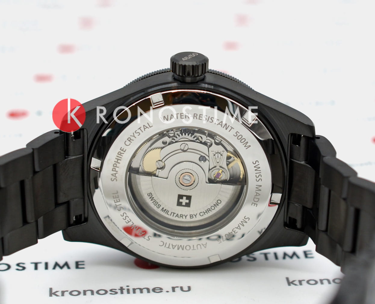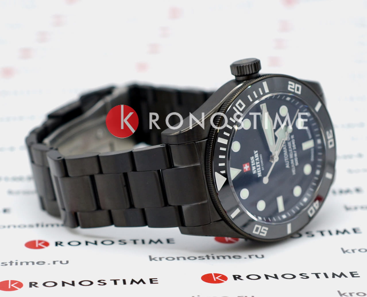 Мужские швейцарские наручные часы Swiss Military by Chrono Diver SMA34075.04, механический механизм (автоматический калибр) с высокой точностью. Сапфировое стекло устойчивое к появлению царапин, обладающее высокой прозрачностью.Корпус часов изготовлен из стали, черного цвета.