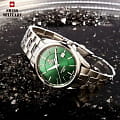 Мужские швейцарские наручные часы Swiss Military by Chrono SMA34085.04, механический механизм (автоматический калибр) с высокой точностью. Сапфировое стеклоСапфировое стеклоПрочный и надёжный материал из кристалла сапфира синтетического происхождения, характеризующийся особой твёрдостью и устойчивостью к царапинам и повреждениям. устойчивое к появлению царапин, обладающее высокой прозрачностью. Класс водозащиты: 100 метров, позволит плавать, нырять и заниматься другими водными видами спорта. Корпус часов изготовлен из стали, серебристого цвета. Люминесцентная подсветкаЛюминесцентное покрытиеПозволяет считывать показания времени в темноте. Производители наносят на стрелки, часовые индексы, безель или поверхность циферблата светонакопительный состав, дающий холодное свечение. стрелок. Браслет с раскладной застёжкойРаскладная застёжкаТакой тип застёжки используется только на браслетах из металла. Она никогда не раскрывается полностью, происходит разделение на 2 и более частей. Раскладывающая застёжка снизит вероятность потери часов к минимуму..