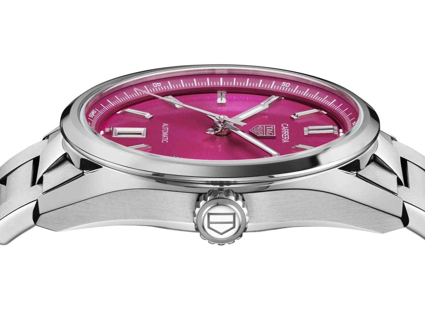 Утончённые часы TAG Heuer WBN2313.BA0001 созданы для стильных и смелых женщин. Механический механизм (автоматический калибр) с высокой точностью производится целиком в стенах компании. Стальной корпус с диаметром 32 мм. Сапфировое стеклоСапфировое стеклоПрочный и надёжный материал из кристалла сапфира синтетического происхождения, характеризующийся особой твёрдостью и устойчивостью к царапинам и повреждениям. устойчивое к появлению царапин, обладающее высокой прозрачностью. На стрелки и метки нанесено люминесцентное покрытиеЛюминесцентное покрытиеПозволяет считывать показания времени в темноте. Производители наносят на стрелки, часовые индексы, безель или поверхность циферблата светонакопительный состав, дающий холодное свечение.. Класс водозащиты: 50 метров, позволит защитить корпус от случайных брызг или капель дождя. Браслет с раскладной застёжкойРаскладная застёжкаТакой тип застёжки используется только на браслетах из металла. Она никогда не раскрывается полностью, происходит разделение на 2 и более частей. Раскладывающая застёжка снизит вероятность потери часов к минимуму.. Апертура даты находится на отметке 6 часов.