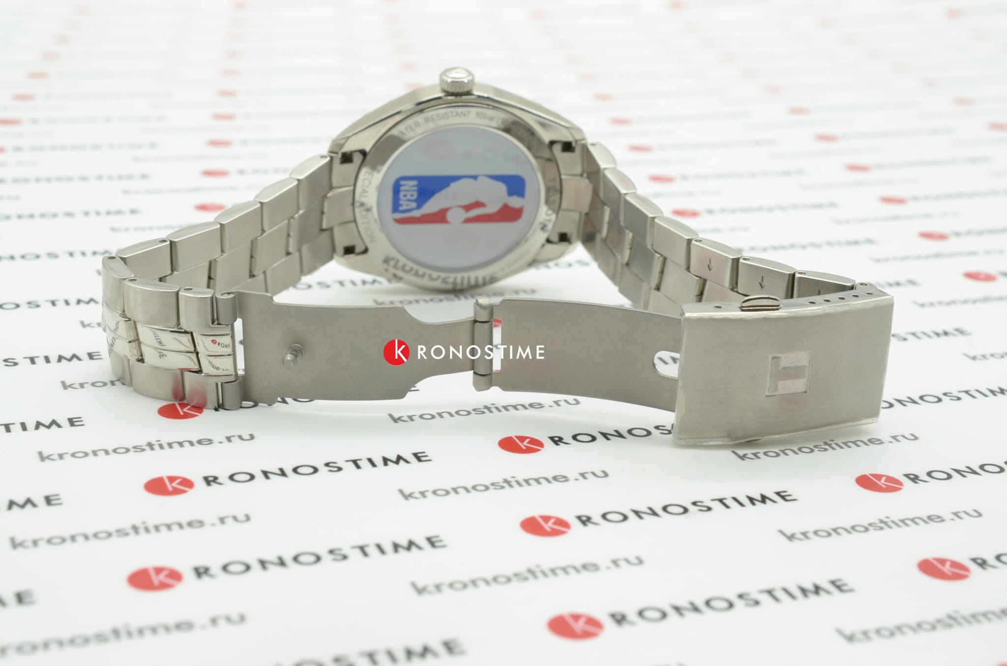 Дизайн аксессуара содержит спортивные и классические черты. Внимание привлекает красная секундная стрелка, воплощающая собой накал страстей на игровом поле. Часы оснащены мощным калибром швейцарского производства ETA F06.111. Задняя крышка имеет фирменный логотип NBA. Стрелки с люминесцентной подсветкойЛюминесцентное покрытиеПозволяет считывать показания времени в темноте. Производители наносят на стрелки, часовые индексы, безель или поверхность циферблата светонакопительный состав, дающий холодное свечение.. Водонепроницаемость 10 бар. Сапфировое стекло. Индикация текущего числа. Габариты: 39 x 39 x 9,1 мм.