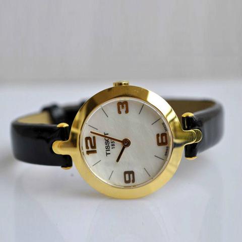 TISSOT T0032093611700 T-Trend Flamingo Quartz - женские кварцевые наручные часы Корпус этих часов небольшого размера (27 мм) и выполнен из нержавеющей стали L316 с PVD-покрытием цвета желтого золота Модель TISSOT T0032093611700 T-Trend Flamingo Quartz имеет устойчивое к царапинам сапфировое стекло, ремешок из натуральной кожи черного цвета, белый циферблат Калибр механизма: ETA 902002 Класс водозащиты: 30 м / 3 АТМ (защита от брызг и случайных капель) Дополнительные функции и особенности: нет Полная заводская комплектация TISSOT: оригинальные часы, фирменная коробка, инструкция, сервисная книжка, роман о часовой фабрике, миникаталог, замшевый фирменный чехол черного цвета для хранения и/или переноски часов, кассовый и товарный чеки Международная гарантия 2 года Производство и сборка: Швейцария