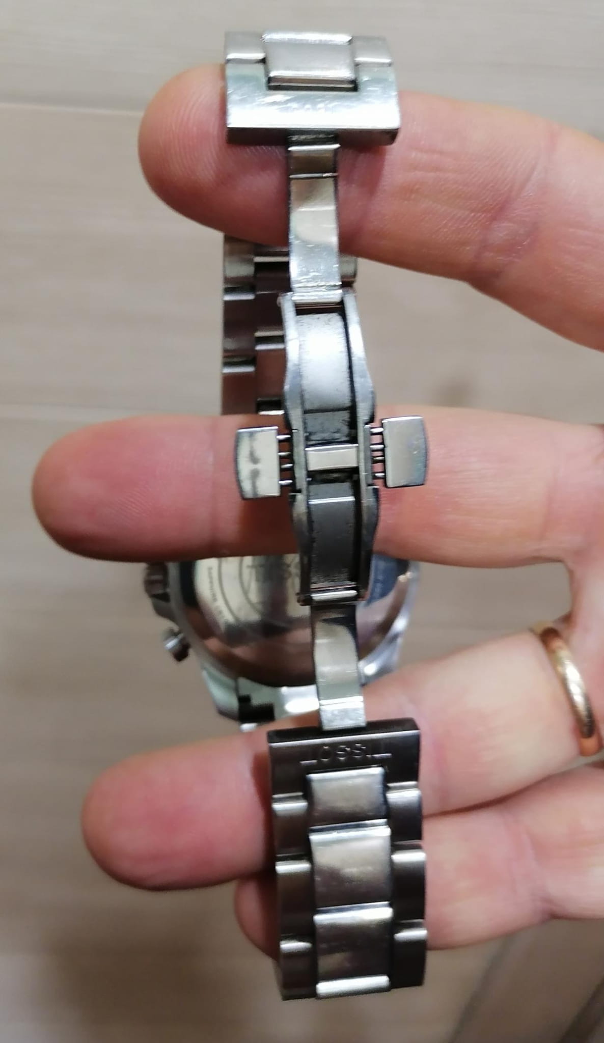Спортивный высокоточный хронографХронографФункция позволяет измерять отрезки времени с особой точностью: часы, минуты, секунды. Верным признаком хронографа является наличие на циферблате 3 дополнительных окошек-счётчиков. в белом цвете дополнен броским синим безелемБезельВнешний ободок, закрепляющий стекло. В спортивных часах так называется поворотное кольцо с делениями на циферблате, выполняет роль таймера – замеряет отрезки времени на шкале. Неподвижный безель – элемент декора. Однонаправленно вращающийся безель на дайверских часах позволяет фиксировать моменты погружения и выныривания на поверхность. со шкалой , сочетание оттенков смотрится весьма гармонично. Работа часов осуществляется благодаря кварцевому калибру ETA G10.212 с высокой точностью хода. Стекло из сапфира устойчиво к образованию царапин. Браслет и корпус из долговечной стали 316L, противостоящей возникновению коррозии. . Секундомер, индикация числа. Габариты: 42,5 x 42,5 x 11,2 мм.