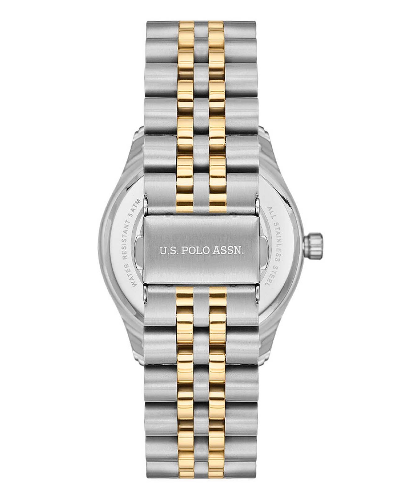 Женские часы U.S. Polo Assn Stile USPA2028-08, кварцевый механизм с высокой точностью. Минеральное стеклоМинеральное стеклоМинеральное стекло представляет собой искусственно выращенный минерал кварца. Такое стекло отличается особой устойчивостью к повреждениям и царапинам. Уступает по некоторым качествам сапфировому стеклу. устойчивое к появлению царапин, обладающее высокой прозрачностью. Корпус часов изготовлен из нержавеющей стали. БезельБезельВнешний ободок, закрепляющий стекло. В спортивных часах так называется поворотное кольцо с делениями на циферблате, выполняет роль таймера – замеряет отрезки времени на шкале. Неподвижный безель – элемент декора. Однонаправленно вращающийся безель на дайверских часах позволяет фиксировать моменты погружения и выныривания на поверхность. с IP-покрытиемIP-покрытиеМетод ионного напыления. Демонстрирует повышенную устойчивость к истиранию, окислению и химическим веществам. Под воздействием высокого давления и температуры около 1500°C молекулы металла надёжно соединяются с частицами корпуса часов.. Стрелки с люминесцентным покрытиемЛюминесцентное покрытиеПозволяет считывать показания времени в темноте. Производители наносят на стрелки, часовые индексы, безель или поверхность циферблата светонакопительный состав, дающий холодное свечение.. Класс водозащиты: 50 метров, позволит защитить корпус от случайных брызг или капель дождя. Стальной браслет с частичным IP-покрытиемIP-покрытиеМетод ионного напыления. Демонстрирует повышенную устойчивость к истиранию, окислению и химическим веществам. Под воздействием высокого давления и температуры около 1500°C молекулы металла надёжно соединяются с частицами корпуса часов. на раскладной застёжкеРаскладная застёжкаТакой тип застёжки используется только на браслетах из металла. Она никогда не раскрывается полностью, происходит разделение на 2 и более частей. Раскладывающая застёжка снизит вероятность потери часов к минимуму..