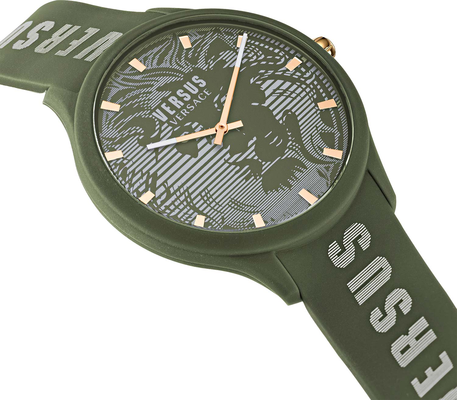 Мужские дизайнерские наручные часы Versus Versace Domus VSP1O0321, кварцевый механизм с высокой точностью. Класс водозащиты: 30 метров, позволит защитить корпус от случайных брызг или капель дождя. Корпус часов изготовлен из стали, зеленого цвета.