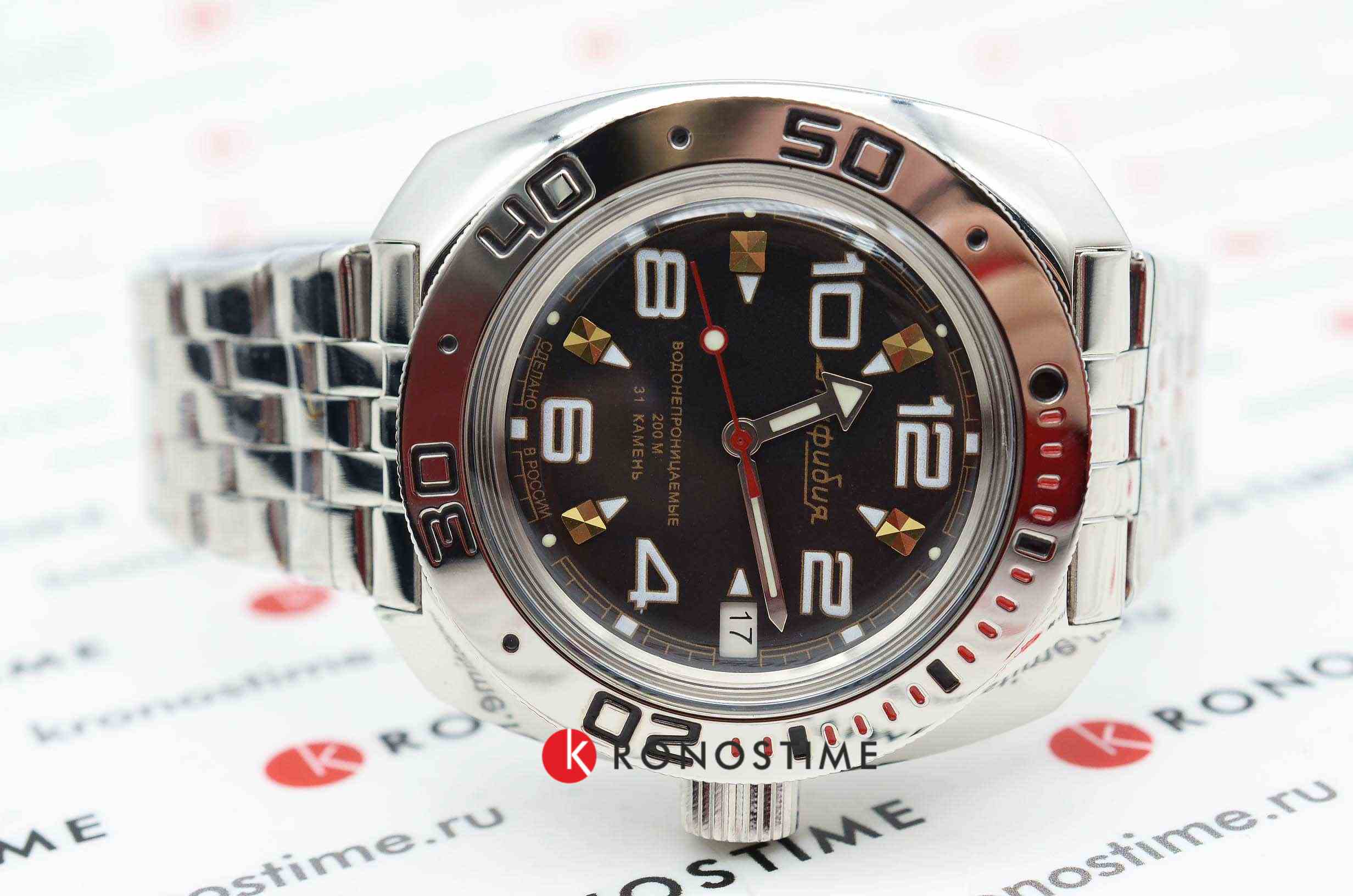 Наручные механические Часы Восток Амфибия Классика 710335 с гарантией. Механизм 2416 с автоподзаводом. Автоподзавод обеспечивает отсутствие необходимости завода наручных часов при постоянном ношении. Запас хода при полном заводе, не менее:31 час. Также есть ручной завод, можно вручную завести часы, если их не носили какое-то время до этого. Завинчивающаяся заводная головка из стали. Водозащита 200 метров, можно использовать для занятий дайвингом. Корпус изготовлен из высококачественной нержавеющий стали. Противоударное устройство оси баланса. Браслет с раскладывающейся застежкой.