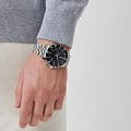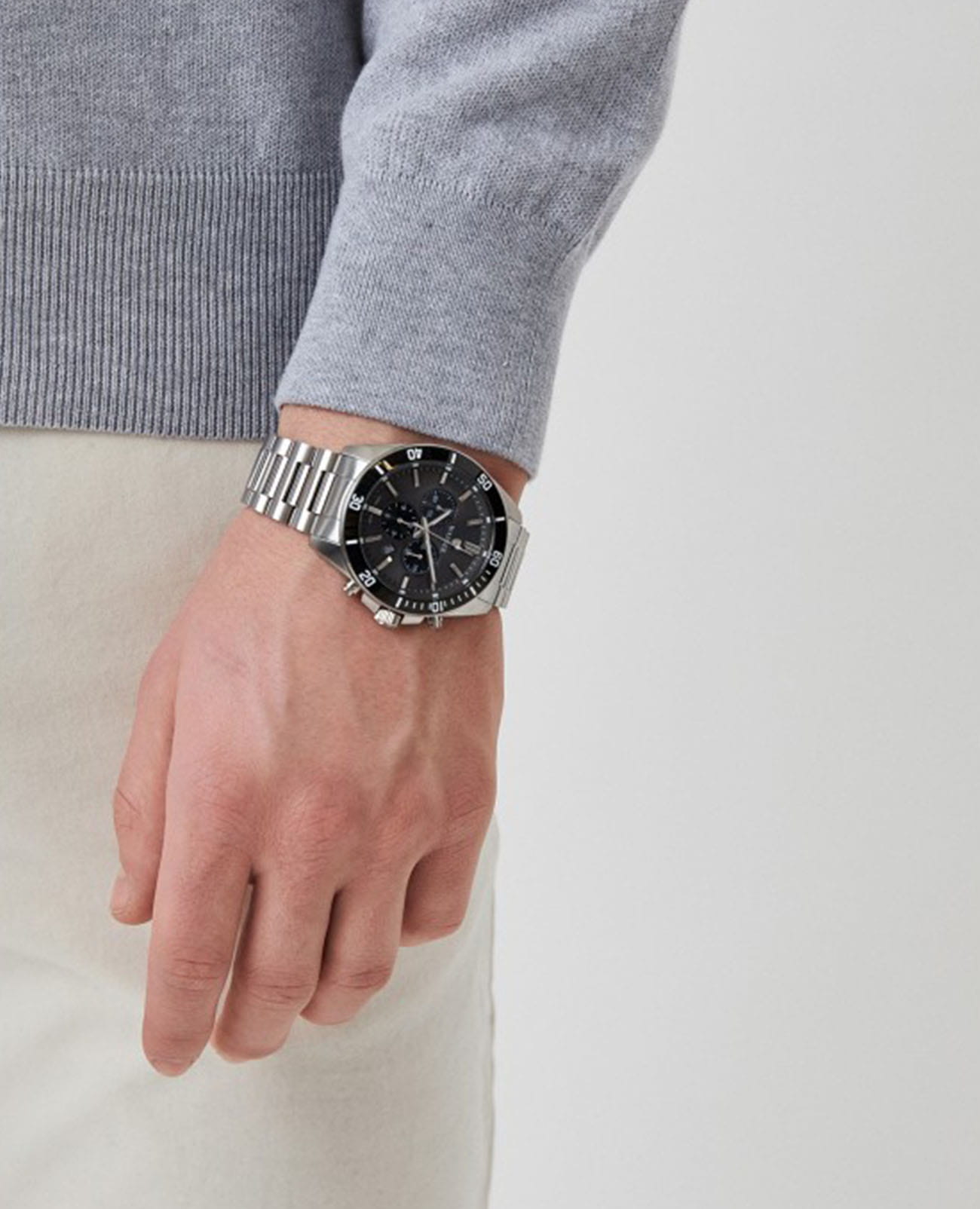 Мужские наручные часы-хронограф WA.19540-D с надежным кварцевым механизмом. Корпус часов изготовлен из нержавеющей стали 316L. Стальной браслет на застёжке-бабочке с кнопкамиЗастёжка "бабочка"Такой вид застёжки дополняется предохранителями, помогающими избежать случайного раскрытия браслета. Обладают изящным исполнением. . Окошко даты находится в между 4 и 5 часами. Сапфировое стеклоСапфировое стеклоПрочный и надёжный материал из кристалла сапфира синтетического происхождения, характеризующийся особой твёрдостью и устойчивостью к царапинам и повреждениям.. Уровень водозащиты: 100 метров, позволит плавать, нырять и заниматься другими водными видами спорта. 12 и 24-часовой формат времени. Вращающийся безельБезельВнешний ободок, закрепляющий стекло. В спортивных часах так называется поворотное кольцо с делениями на циферблате, выполняет роль таймера – замеряет отрезки времени на шкале. Неподвижный безель – элемент декора. Однонаправленно вращающийся безель на дайверских часах позволяет фиксировать моменты погружения и выныривания на поверхность. с PVD-покрытиемPVDУльтратонкое покрытие наносится в технике вакуумного напыления, сочетает в себе нитрид титана особой прочности со слоем золота или оксида хрома. Несёт в себе декоративную или защитную функцию.. Стрелки с люминесцентным покрытиемЛюминесцентное покрытиеПозволяет считывать показания времени в темноте. Производители наносят на стрелки, часовые индексы, безель или поверхность циферблата светонакопительный состав, дающий холодное свечение..