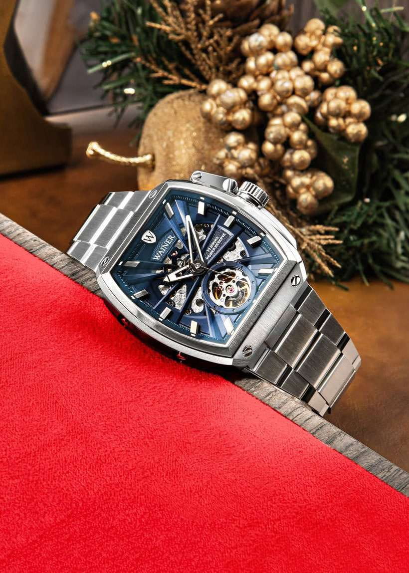 Мужские механические часы-скелетон с автоподзаводом Wainer WA.25150-D сочетает элегантный дизайн и высокое качество исполнения. Бочкообразный корпус выполнен из нержавеющей стали с частичным PVD-покрытиемPVDУльтратонкое покрытие наносится в технике вакуумного напыления, сочетает в себе нитрид титана особой прочности со слоем золота или оксида хрома. Несёт в себе декоративную или защитную функцию., диаметром 46 х 47мм и толщиной 14 мм, обеспечивает прочность и долговечность. Циферблат с метками в виде штрихов и украшен фирменным логотипом Wainer. Сапфировое стеклоСапфировое стеклоПрочный и надёжный материал из кристалла сапфира синтетического происхождения, характеризующийся особой твёрдостью и устойчивостью к царапинам и повреждениям. защищает дисплей от царапин и механических повреждений. Стальной браслет с на застёжке-бабочкеЗастёжка "бабочка"Такой вид застёжки дополняется предохранителями, помогающими избежать случайного раскрытия браслета. Обладают изящным исполнением. обеспечивает комфортное ношение. Водонепроницаемость до 30 метров позволит защитить корпус от случайных брызг или капель дождя. Рифленая заводная головка с защитой. Прозрачная задняя крышка. Стрелки с люминесцентным покрытиемЛюминесцентное покрытиеПозволяет считывать показания времени в темноте. Производители наносят на стрелки, часовые индексы, безель или поверхность циферблата светонакопительный состав, дающий холодное свечение., улучшая читаемость в условиях недостаточного освещения. Wainer — это стильный и надежный аксессуар для тех, кто ценит швейцарское качество и современные технологии.
